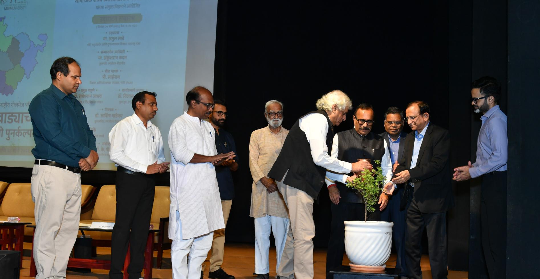 The event was graced by senior journalist P. Sainath, Deputy Editor of The Hindu Business Line Dr. Radheshyam Jadhav, Vice-Chancellor Prof.Dr. Vilas Sapkal, Registrar Dr. Ashish Gadekar, economist Prof. H. M. Desarda, Dean Dr. John Chelladurai, Director Dr. Ramesh Jare, Director Dr. K. P. Singh, Dr. H. N. Sonkamble, along with professors, students, and other dignitaries.